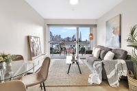 Contemporary open plan design, oversized balcony with dazzling views, Stone-topped kitchen features stainless steel dishwasher, ceramic cooktop, Double-sized bedroom fitted with a generous mirrored built-in wardrobe, Sleek modern bathroom with frameless shower and internal laundry facilities, off-street parking space