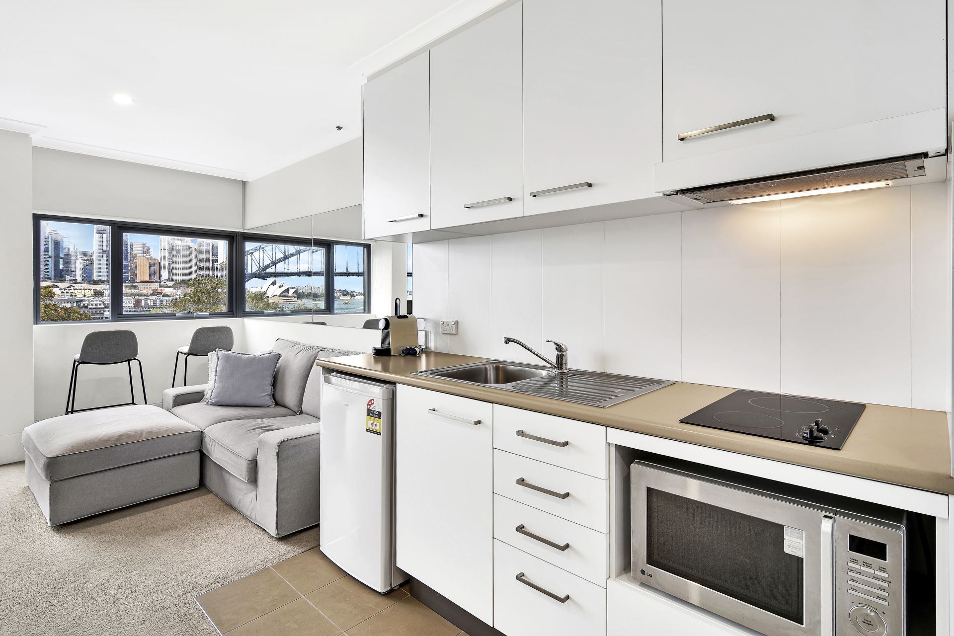 This fully transformed studio apartment offers stunning views across the harbour to the Harbour Bridge and Opera House. It is one of only 12 studios in the building with Bridge views. Positioned in a landmark waterfront security access building that provides an on-site manager, security at night and manicured gardens. Located only a short walk from McMahons Point Ferry, North Sydney train station, Greenwood Plaza and trendy Blues Point Road cafes and shops.